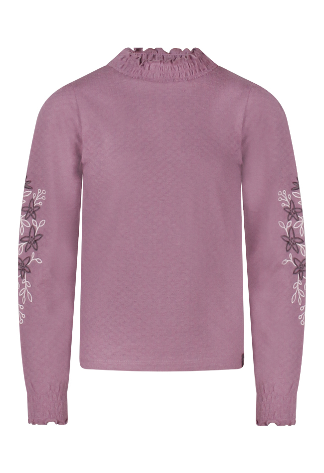 Deze fijne smock top met turtle neck is een echte musthave voor meisjes die houden van een lieve maar hippe look. De mouwen stelen de show met prachtig geborduurde bloemen, terwijl het smockwerk zorgt voor een mooie pasvorm en draagcomfort. Mooi op een rok of jeans en vergeet niet er een leuk gilet overheen te dragen.