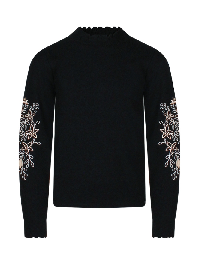 Deze fijne smock top met turtle neck is een echte musthave voor meisjes die houden van een lieve maar hippe look. De mouwen stelen de show met prachtig geborduurde bloemen, terwijl het smockwerk zorgt voor een mooie pasvorm en draagcomfort. Mooi op een rok of jeans en vergeet niet er een leuk gilet overheen te dragen.