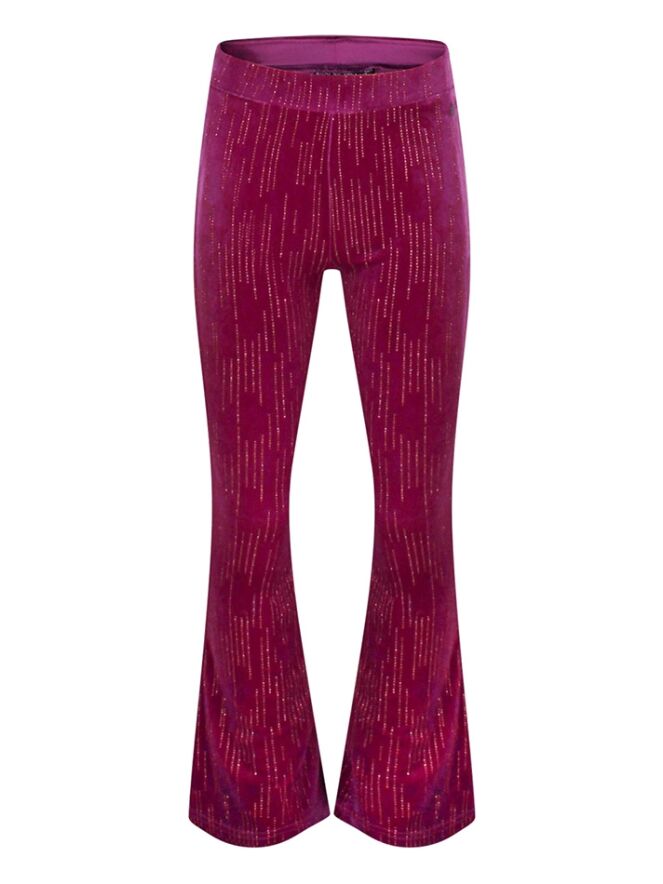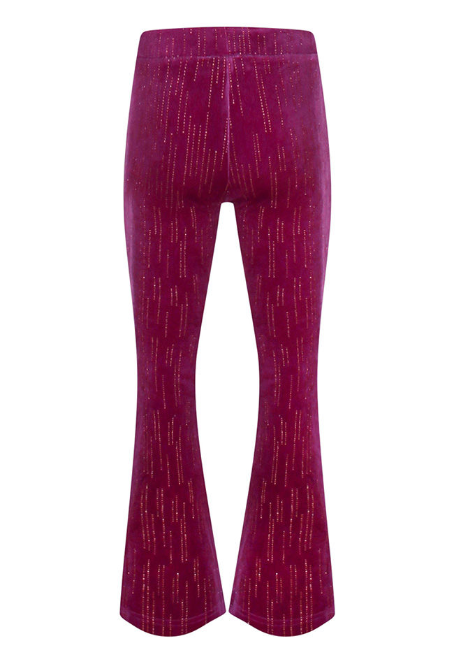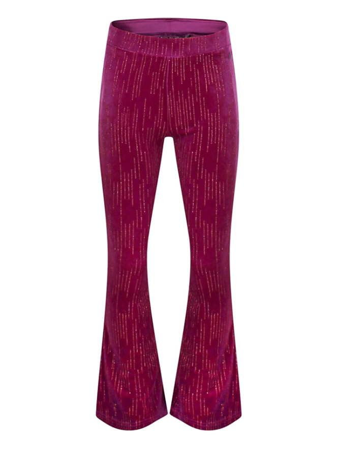 Glitterende velvet flared broek voor meisjes, die je kunt combineren met de bijpassende top (W10526) of een heerlijke warme sweater. Het zachte materiaal en de losse pasvorm zorgen voor comfort en stijl. Ideaal voor de feestdagen.