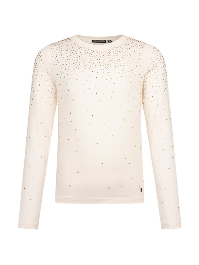 Hoe leuk is dit shirt voor meisjes! De all-over strassteentjes maken hem extra feestelijk. Combineer hem met een van de paillettenrokjes uit de partycollectie voor een echte feestlook, of draag hem op een jeans voor een stoerdere stijl.