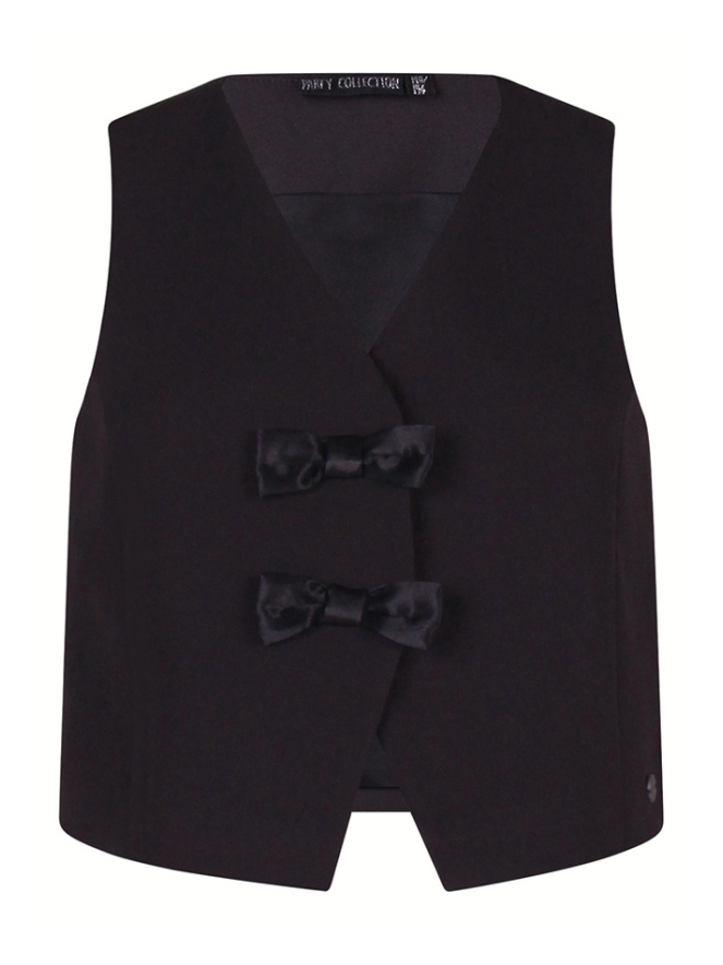 Hoe leuk is dit gilet voor meisjes! Simpel, maar met de satin strikjes op de voorkant krijgt het net dat beetje extra. Draag hem over een shirt met een nette pantalon, of op een glinsterend rokje voor een feestelijke look.