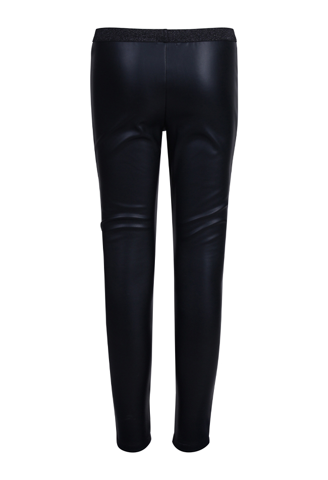 Pu legging van Persival. De legging is van PU leer, heeft een recht model en een glitter taille band. Materiaal: 9100% polyurenthaan. Wassen op 30 graden, niet in de droger, niet bleken, niet stomen, niet strijken.