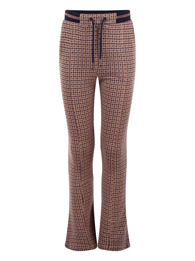 Pied de Poule broek van Persival. De broek heeft een geruite print en een elastieken taille met glitter. De broek heeft flare pijpen. Materiaal: 80% katoen, 15% polyester, 5% elasthan. Wassen op 30 graden, niet bleken, niet in de droger, kan gestreken worden.