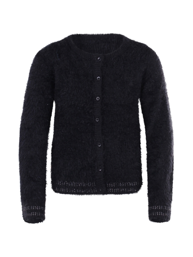 Harig vest van Persival. Het vest is van feather yarn en heeft glitter in de mouw en body onderkant. Materiaal: 65% nylon, 35% acrylic. Wassen op 30 graden, niet bleken, niet in de droger, niet strijken.