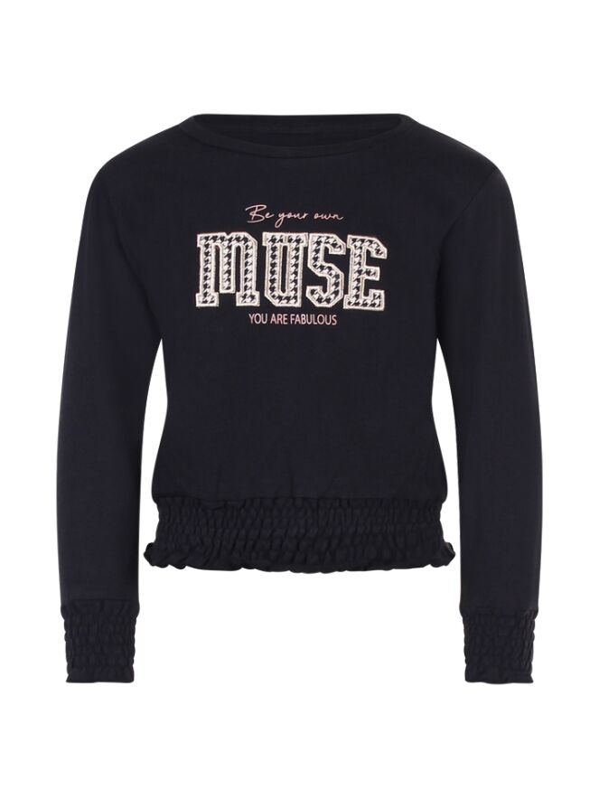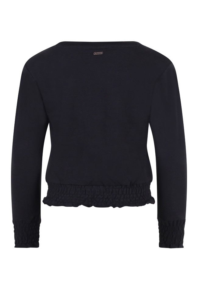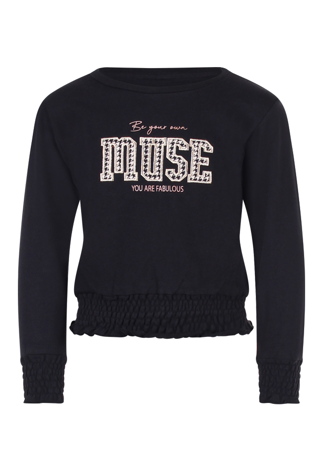 Trui van Persival. De trui heeft een tekst op de voorkant en smock details in de mouwen en de onderkant van de trui. Materiaal: 95% katoen, 5% elasthan. Wassen op 30 graden, niet bleken, niet in de droger, kan gestreken worden.