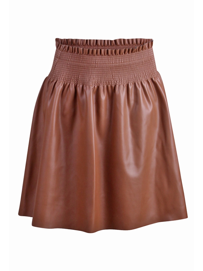 PU rok van Persival. De rok heeft een smock taille band en is van PU/namaak leer. De rok heeft een skatermodel. Materiaal: 100% polyrethaan. Wassen op 30 graden, niet bleken, niet in de droger, niet strijken.