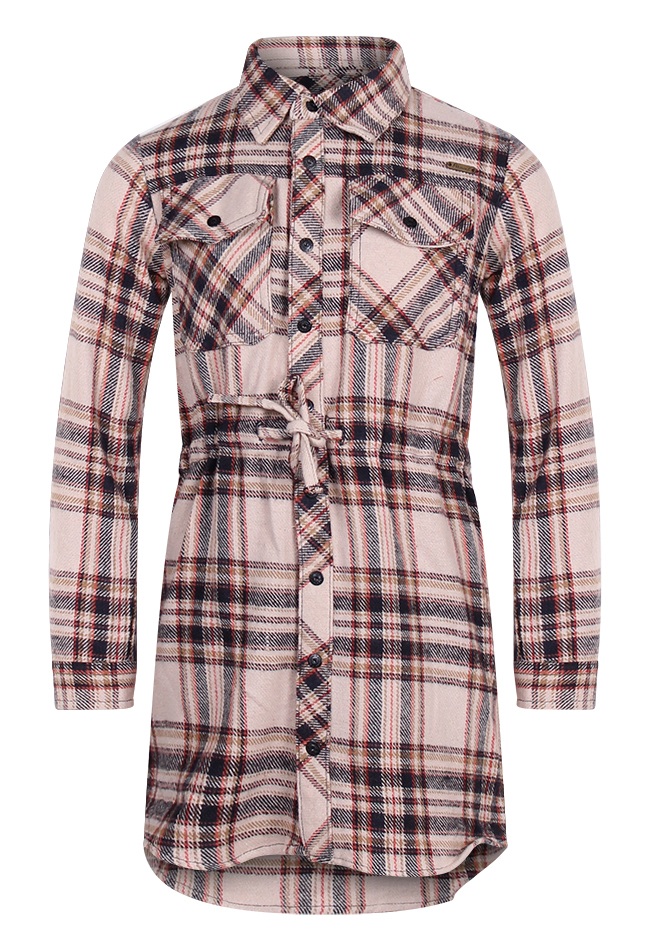 Flannel jurk van Persival. De jurk heeft een geruite print en een blouse model. Er zit een touwtje in de taille. Materiaal: 100% katoen. Wassen op 30 graden, niet bleken, niet in de droger, kan gestreken worden.