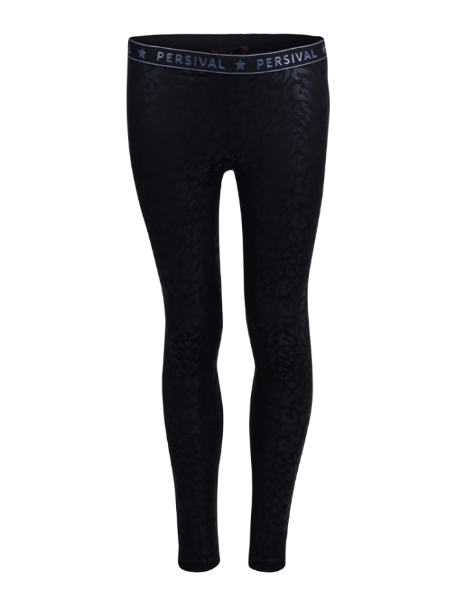 Legging van Persival. De legging heeft een zebra print en een logo tailleband. De legging heeft een coated look. Materiaal: 95% polyester, 5% elasthan. Wassen op 30 graden, niet bleken, niet in de droger, kan gestreken worden.