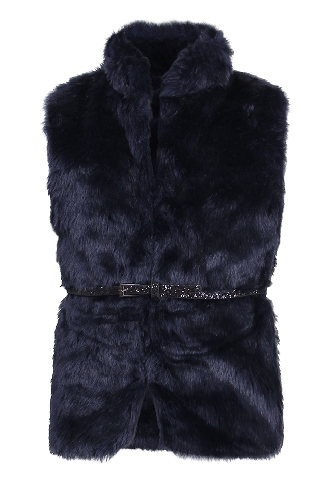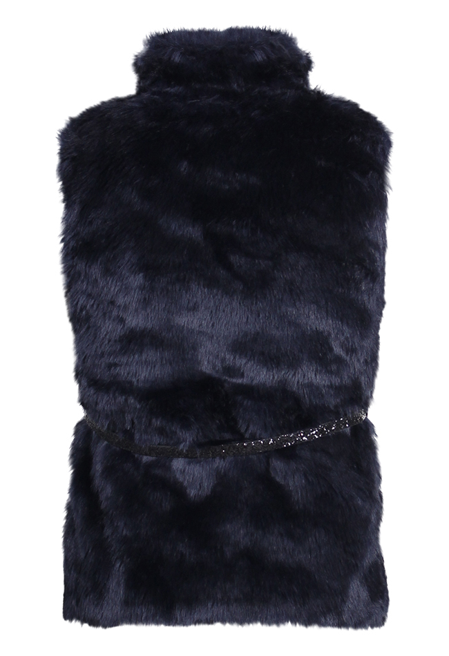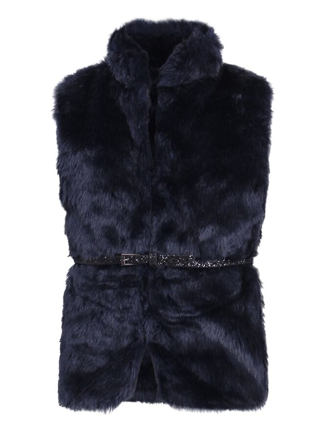 Fake-fur body warmer van Persival. Het gilet is van zachte fake fur stof en heeft een glitter riem. Materiaal: 100% polyester. Wassen op 30 graden, niet bleken, niet in de droger, niet strijken.