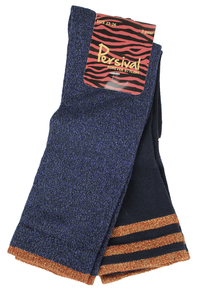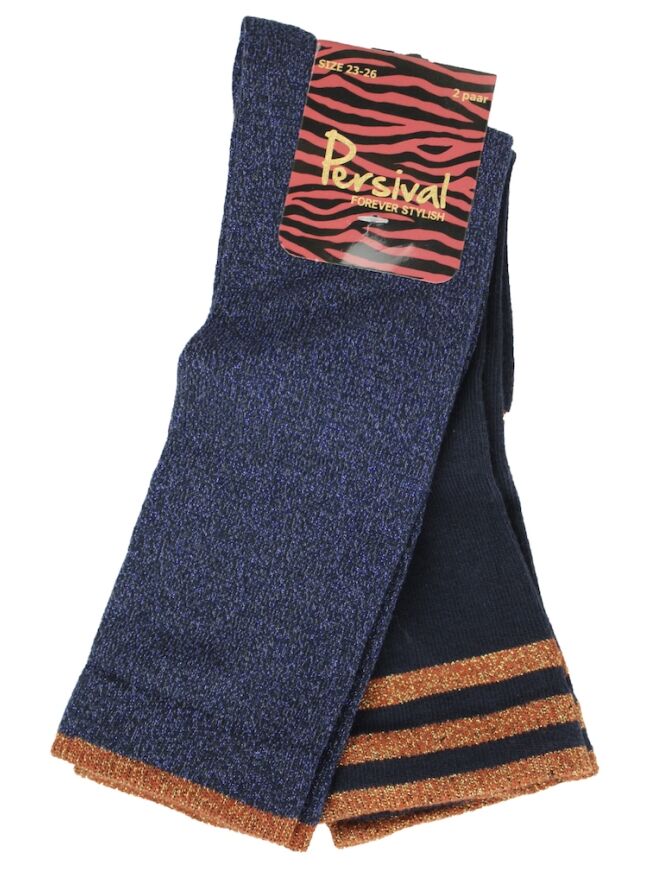 2 paar knie kousen. 1 paar animal print en 1 paar met glitter banen. Materiaal: 78% katoen, 20% polyamide, 2% elasthan. Wassen op 30 graden, niet bleken, niet in de droger.