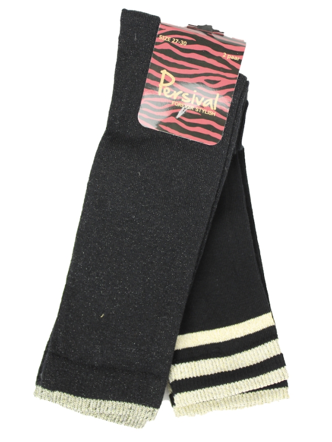 2 paar knie kousen. 1 paar animal print en 1 paar met glitter banen. Materiaal: 78% katoen, 20% polyamide, 2% elasthan. Wassen op 30 graden, niet bleken, niet in de droger.