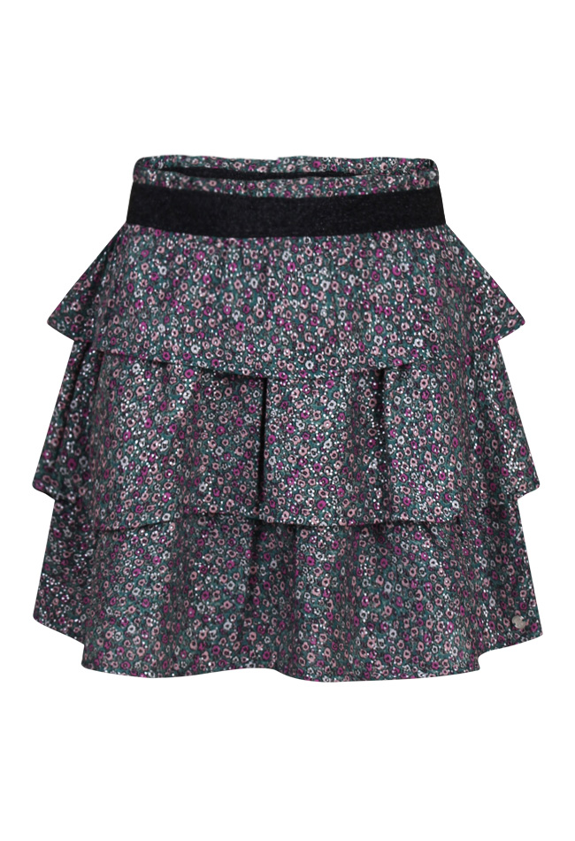 Ontdek ons schattige korte stroken rokje met een betoverende glitter/bloementjes print. De rok heeft een speels en feestelijk karakter dat perfect is voor elke gelegenheid. De tailleband is voorzien van een glitter elastieken band, wat zorgt voor een comfortabele en trendy pasvorm. Bovendien heeft het rokje een onderrok.