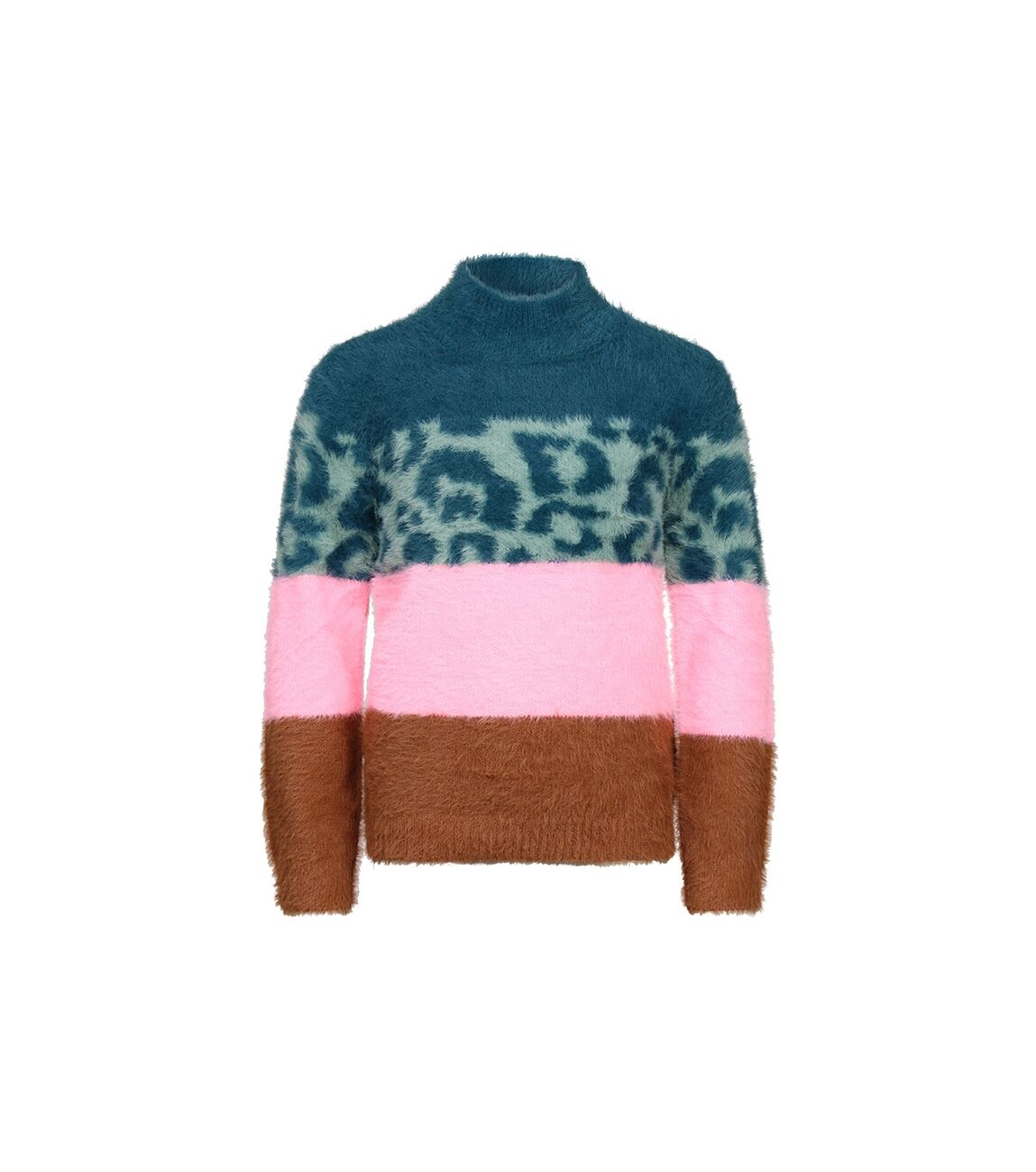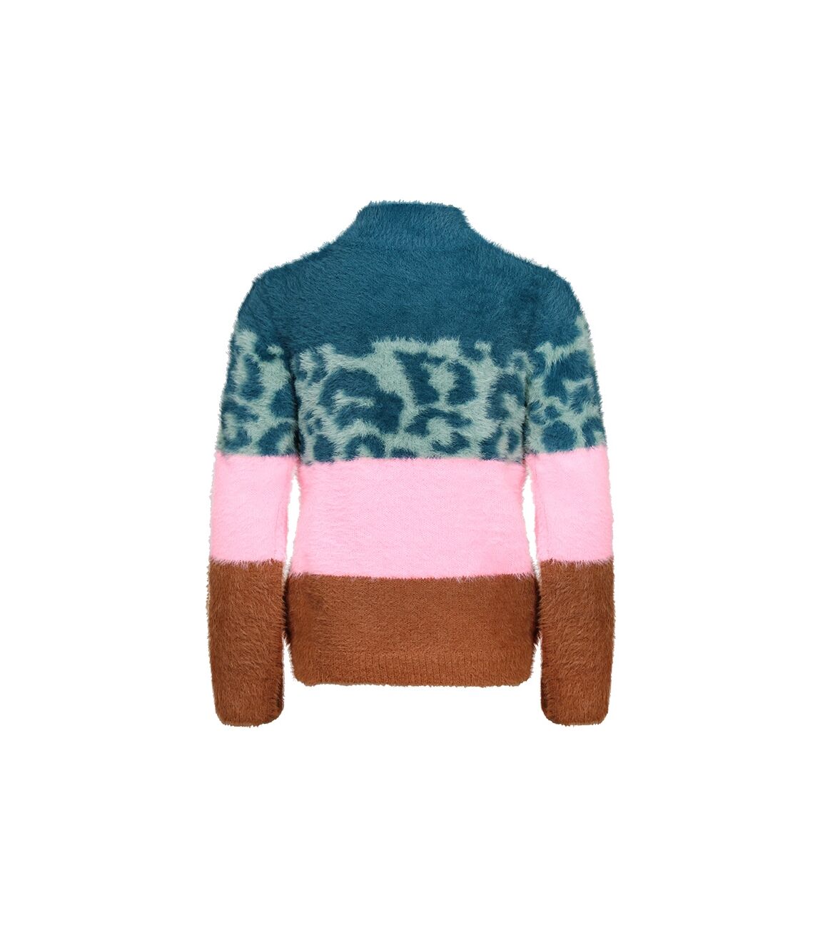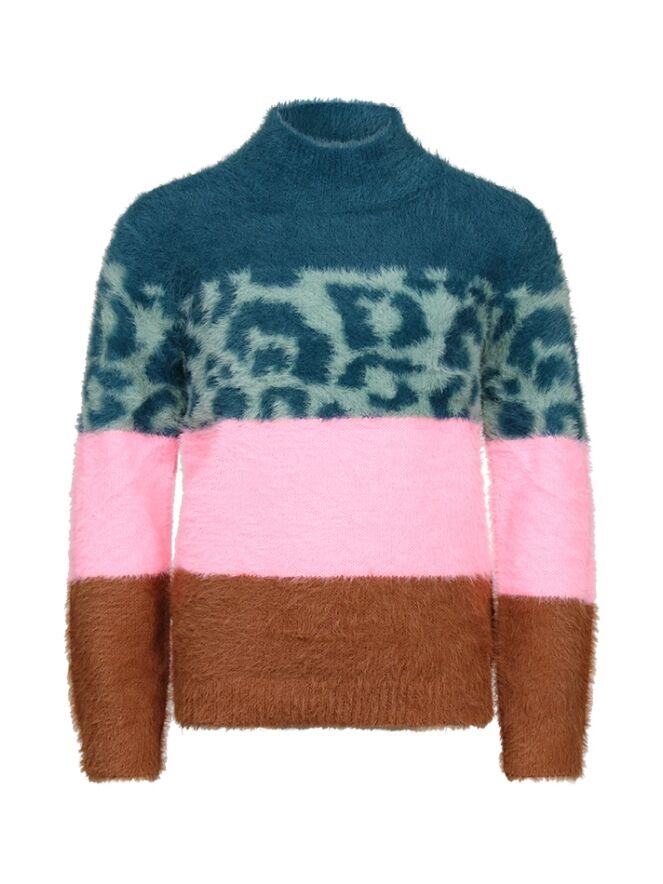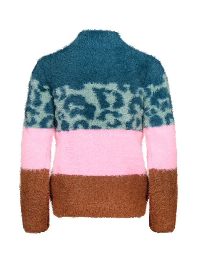 Deze meisjes trui met opvallend streep patroon is gemaakt van featheryarn wat voor een heel zacht en pluizig effect zorgt.