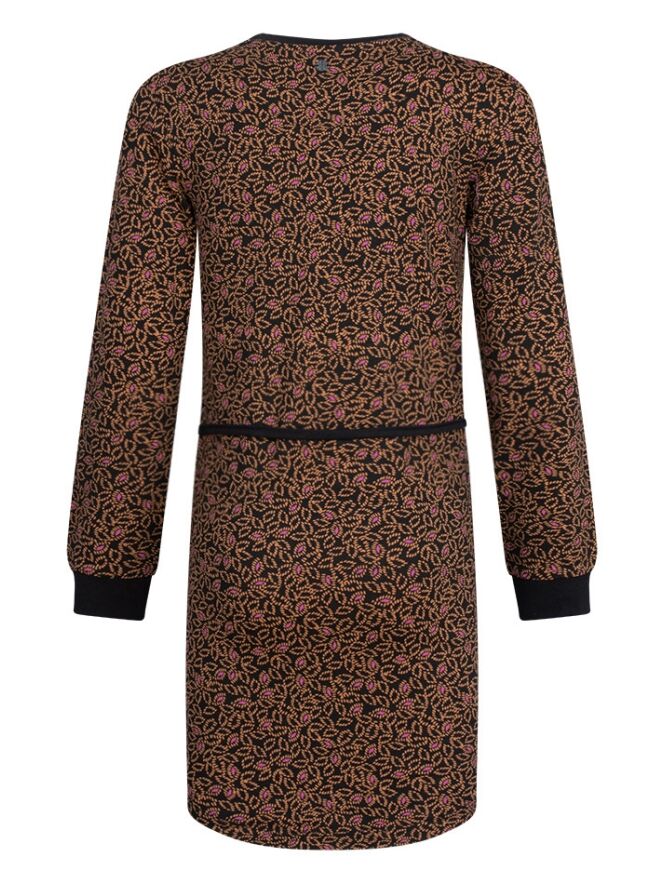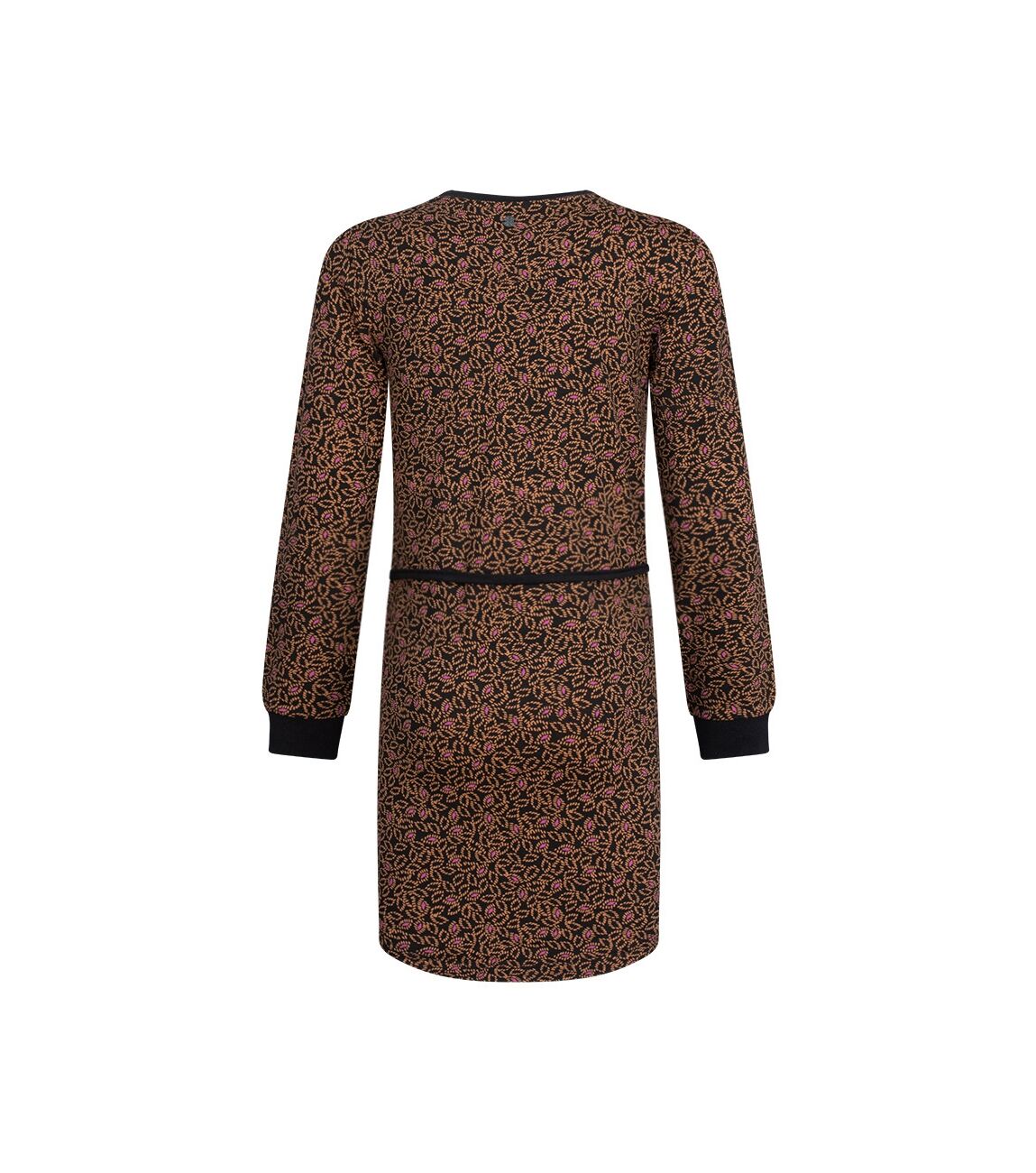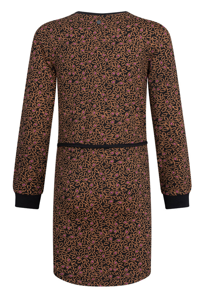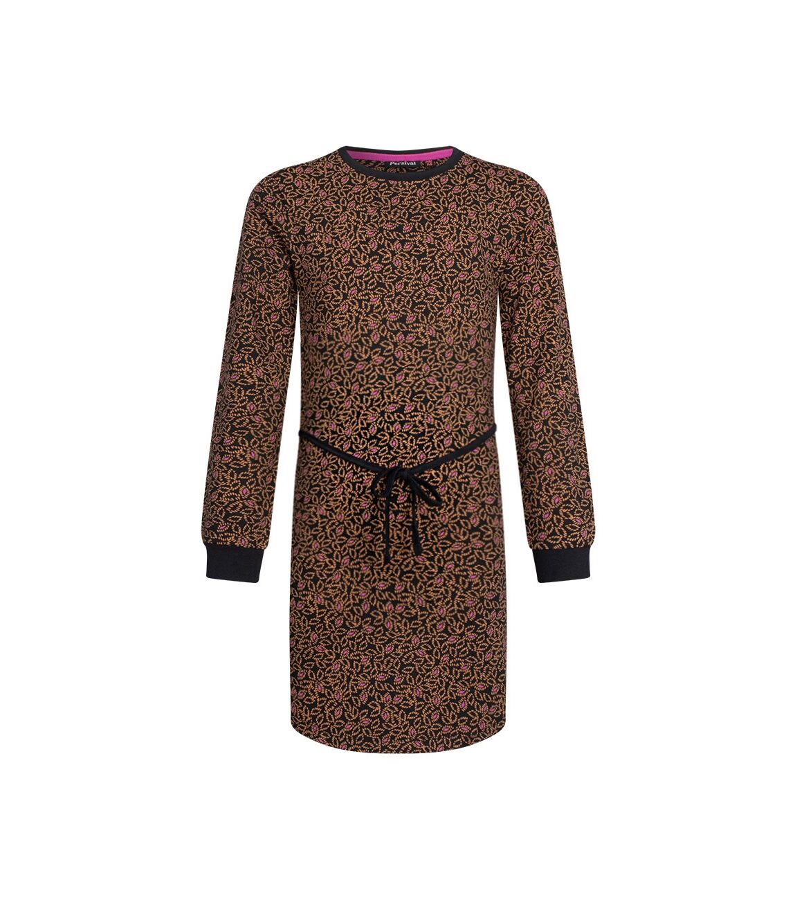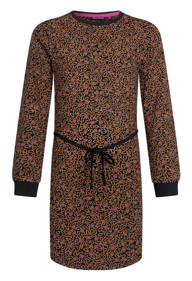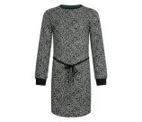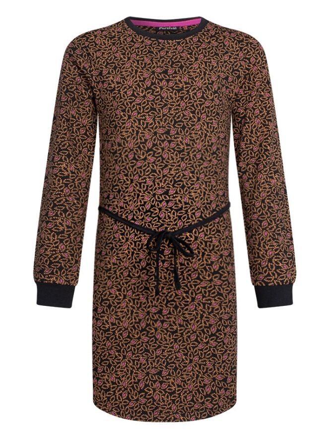 Meisjes jurk met een ronde hals, ceintuur en een allover print.