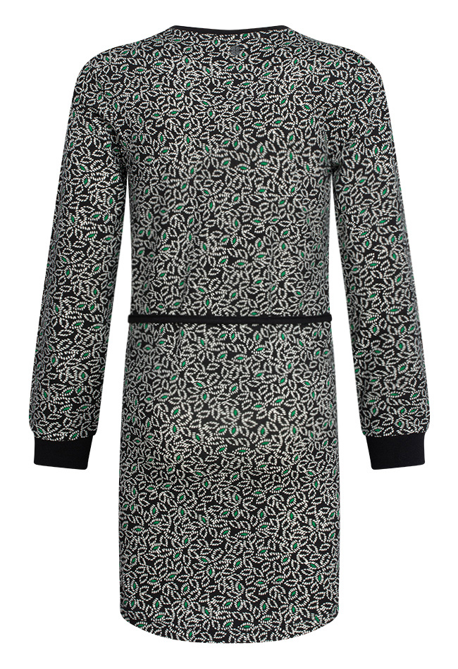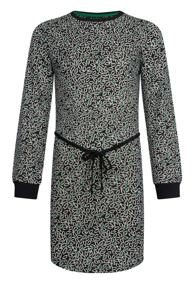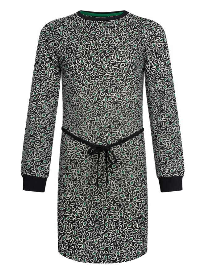 Meisjes jurk met een ronde hals, ceintuur en een allover print.