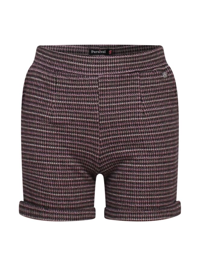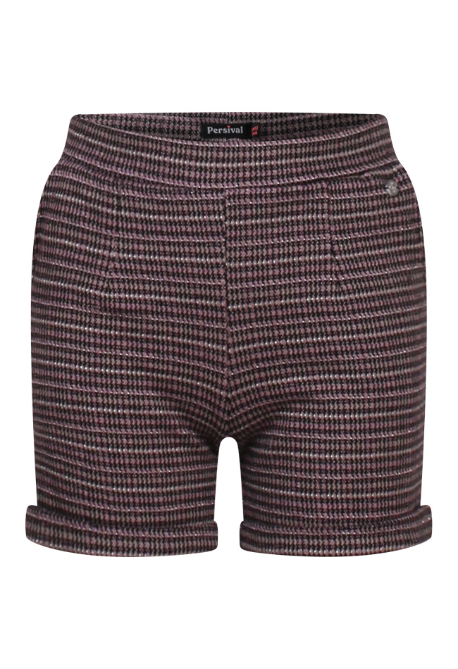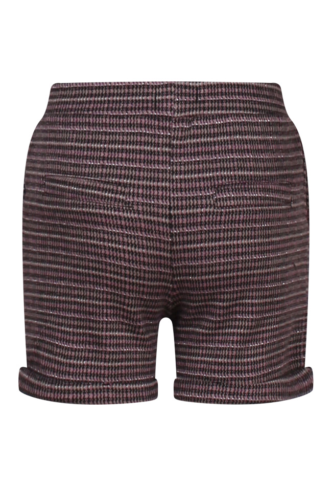 Geruite short met bandplooi, twee steekzakken en twee sier zakken op de achterkant. Deze korte broek heeft elastiek in de taille.