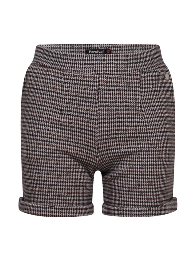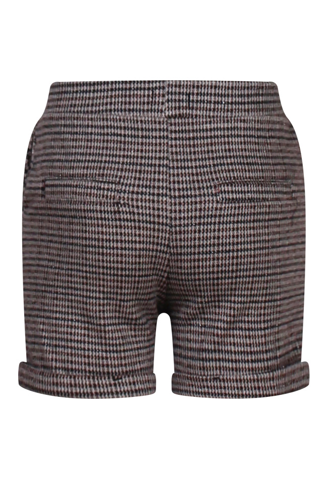 Geruite short met bandplooi, twee steekzakken en twee sier zakken op de achterkant. Deze korte broek heeft elastiek in de taille.