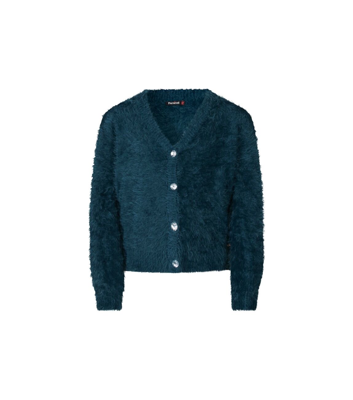 Dit meisjes vest is gemaakt van featheryarn wat voor een super zacht en pluizig effect zorgt. Het vest heeft 4 glimmende knopen.