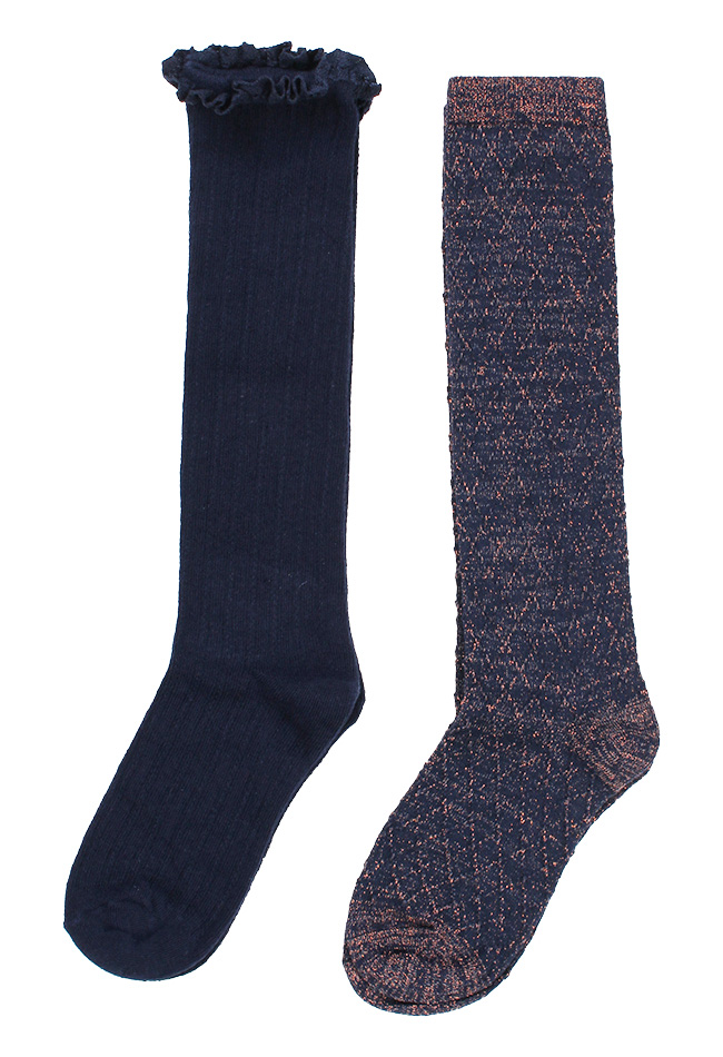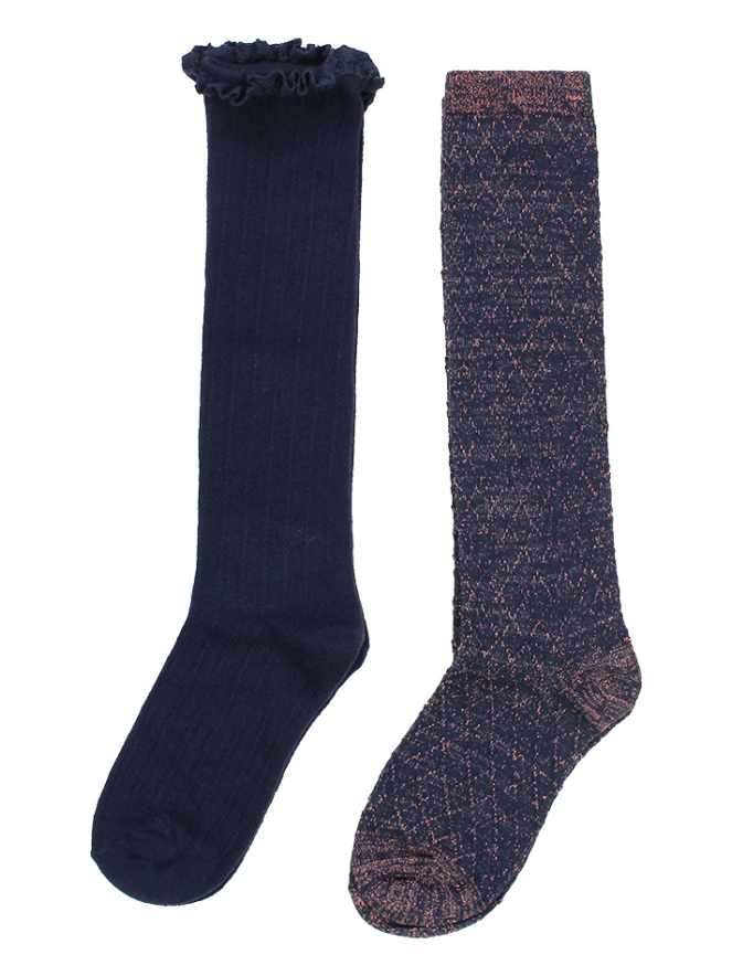 Bundel van 2. Uni kniekous met ingebreid kabel dessin en een lurex glitter kniekous.