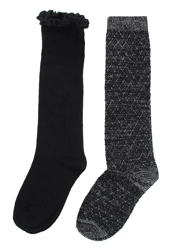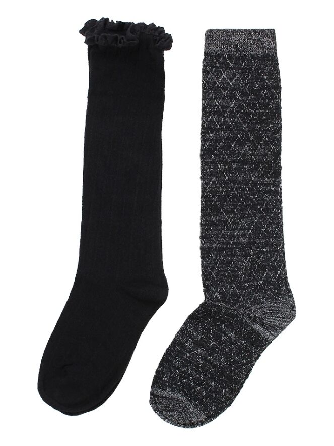Bundel van 2. Uni kniekous met ingebreid kabel dessin en een lurex glitter kniekous.