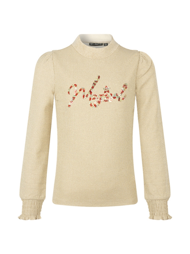 Deze top uit onze party collectie heeft de tekst Magical in pailletten voorop het shirt. De hals heeft een halve kol en is daardoor lekker warm. In dit shirt zit een subtiel glittertje verwerkt.