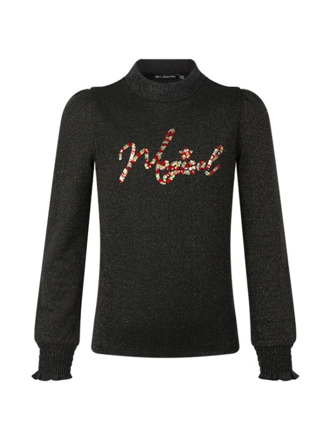 Deze top uit onze party collectie heeft de tekst Magical in pailletten voorop het shirt. De hals heeft een halve kol en is daardoor lekker warm. In dit shirt zit een subtiel glittertje verwerkt.
