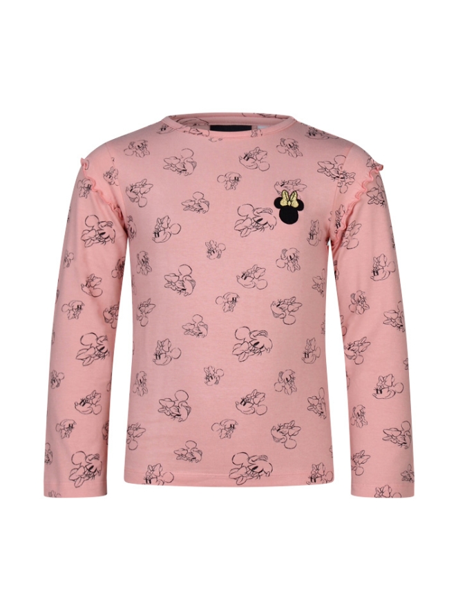 Dit leuke shirt van Disney Minnie Mouse met lange mouwen heeft ruches op de schouders en een allover print met Minnie's!