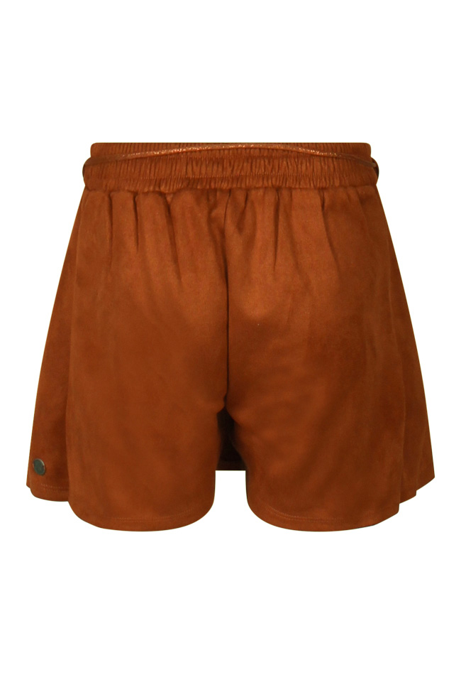 Leuke skort van suedine. Short skort is aan de voorkant een geplooid rokje maar is eigenlijk gewoon een kort broekje. De suedine is super zacht en het bijgeleverde koordje maakt het helemaal af! Maar je kan er ook voor kiezen om hem er af te laten.