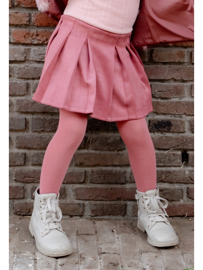Leuke skort van suedine. Short skort is aan de voorkant een geplooid rokje maar is eigenlijk gewoon een kort broekje. De suedine is super zacht en het bijgeleverde koordje maakt het helemaal af! Maar je kan er ook voor kiezen om hem er af te laten.