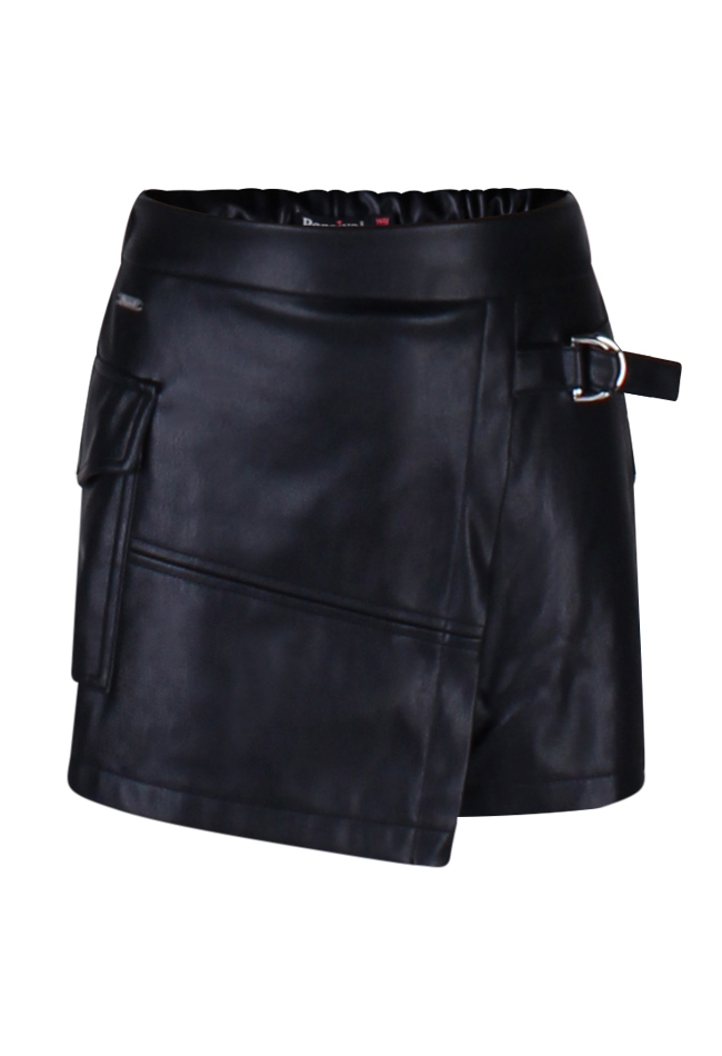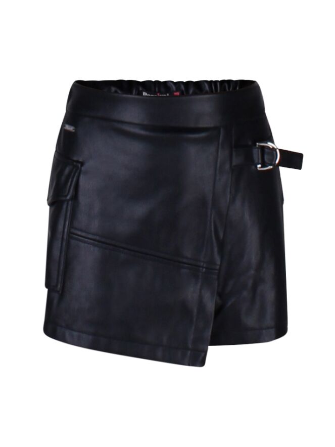 Deze stoere skort van nep leer is een combinatie van een korte broek, skort en cargo! Drie in een dus! Super hip en trendy, voor de durfallen en stoere meiden! Combineer met een leuke boot, legging en lekkere warme sweater en je bent helemaal on trend!