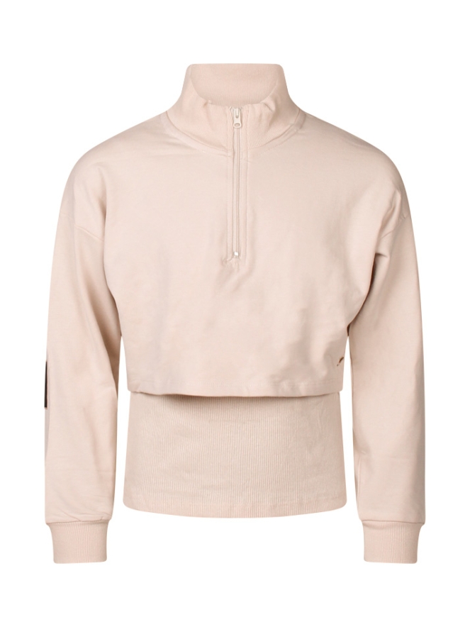 Creative art atelier! Deze sweater is net even anders. Dat komt omdat hij 2 delig is! Er zit een hemdje van ribstof (vast) onder de crobbed sweater. Heb je al de print op de rug van de sweater gezien? Trendy Musthave!
