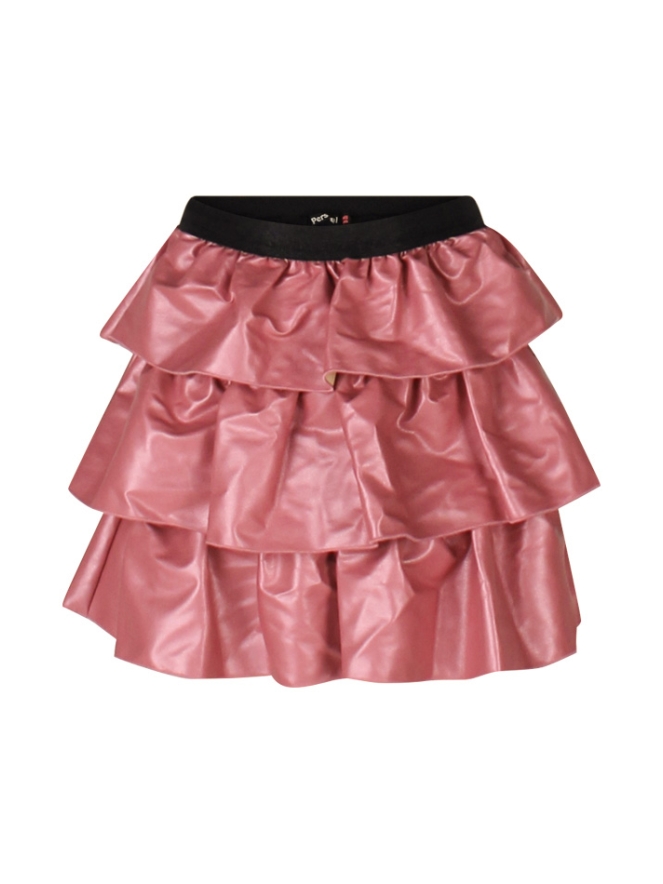 Met dit rokje kan je alle kanten op! Ga jij voor lief of stoer? Dit strokenrokje van imitatie nep leer heeft een lichte glans en een elastische tailleband met glittertje er in. Maak het lief met een vrolijke top of maak het stoer met boots er eronder. Super hip, trendy en een lust voor het oog!