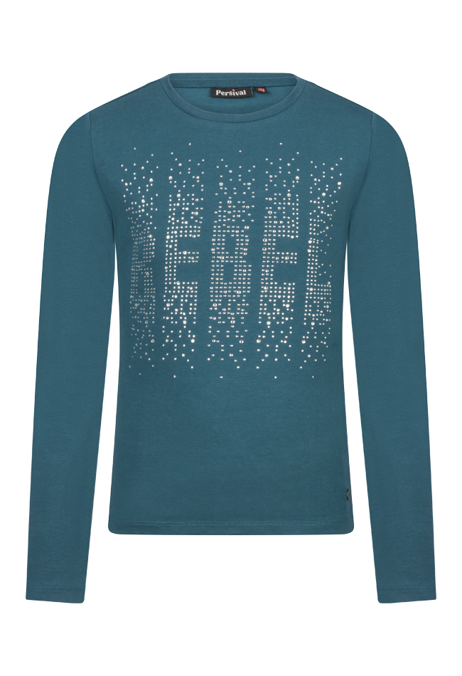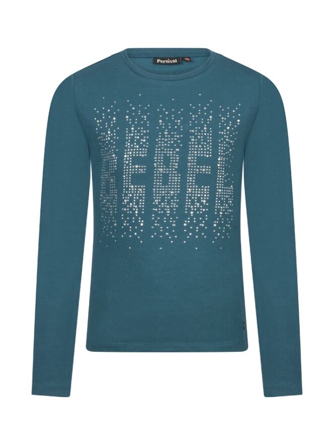 Bling bling! Dit stoere T-shirt met lange mouwen voor meisjes heeft een grote tekstprint REBEL met strass steentjes. Leuk en makkelijk te combineren op een spijkerbroek of rokje, in een keer klaar!