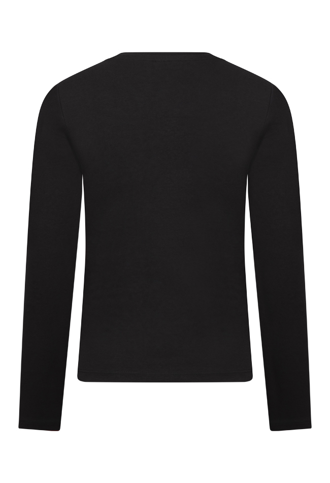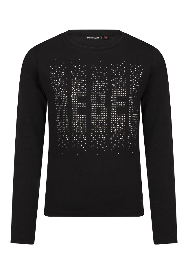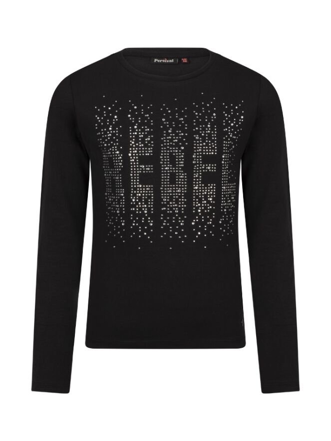 Bling bling! Dit stoere T-shirt met lange mouwen voor meisjes heeft een grote tekstprint REBEL met strass steentjes. Leuk en makkelijk te combineren op een spijkerbroek of rokje, in een keer klaar!