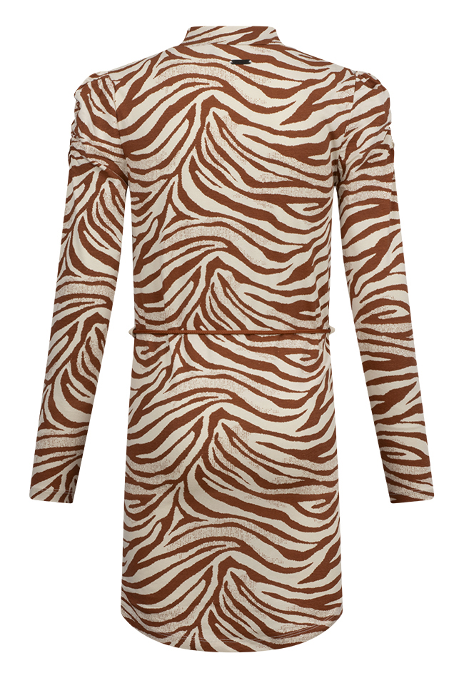 He Zebra! Dit jurkje is een recht model met opvallende zebraprint. De turtleneck col kleedt lekker warm af. Als extra detail kan je de bijgeleverde veter als ceintuurtje gebruiken. Hip, trendy, lekker casual!