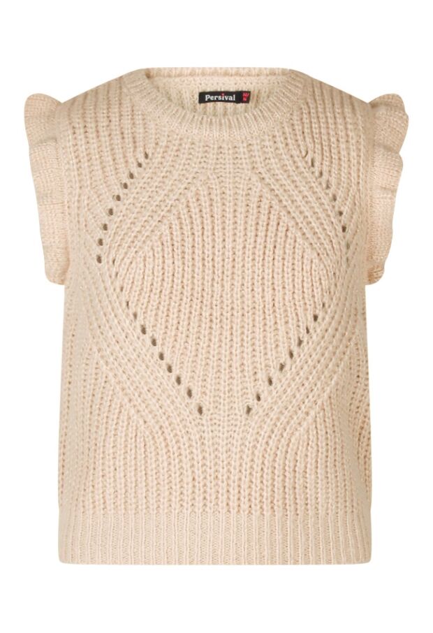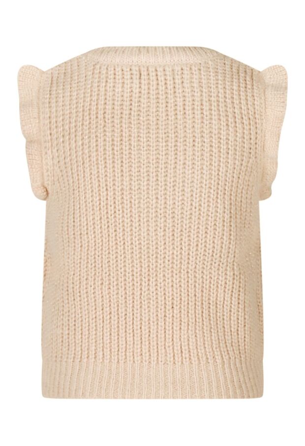 Wauw! Deze grof gebreide spencer draag je eenvoudig over een top of bloesje. Er zit heel subtiel een lurex glitterdraad door het garen verweven voor een special effect en daar houden we wel van! Heb je de ruche op de schouder al gezien? Deze spencer houdt jou lekker warm tijdens koude dagen en laat je stralen op je best!