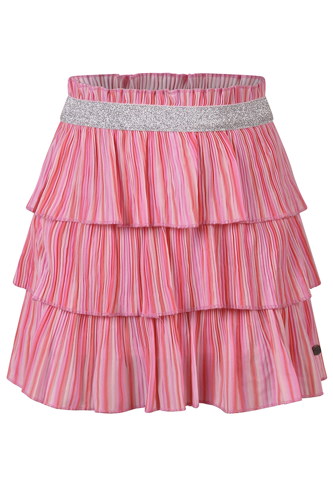Op zoek naar een vrolijke en trendy meisjes rok? Deze plissé rok van Persival met kleurrijke regenboogprint is een echte must-have voor elke meisjesgarderobe. De speelse print en luchtige stof maken deze rok perfect voor zowel dagelijkse outfits als feestelijke momenten. De rok is gemaakt van een soepele crêpe stof met een zachte katoenen voering, waardoor hij niet alleen mooi valt maar ook comfortabel draagt. De plissé afwerking zorgt voor een speels en zwierig effect bij elke beweging. Dankzij de elastische tailleband trek je de rok makkelijk aan en zit hij altijd fijn. De mini lengte geeft de rok een frisse, zomerse uitstraling en maakt hem ideaal om te combineren met een T-shirt, top of blouse.