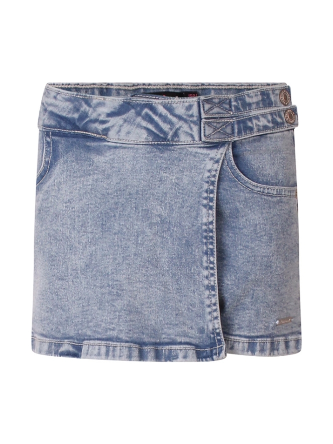 Deze trendy meisjes skort van Persival (broekrokje) combineert het beste van twee werelden: de look van een rokje met het comfort van een short. Gemaakt van stevige en licht elastische denim zit deze skort heerlijk en is hij perfect voor actieve meiden. Het model heeft een speelse overslag aan de voorkant, waardoor het eruitziet als een rokje, terwijl de short eronder zorgt voor extra bewegingsvrijheid. De rits- en knoopsluiting en achterzakken geven de skort een stoere denim uitstraling. Dankzij de verstelbare tailleband zit hij altijd perfect. De korte lengte en regular fit maken deze skort ideaal voor zomerse dagen, school of een casual-feestelijke outfit. Makkelijk te combineren met een T-shirt, blouse of top voor een complete look.