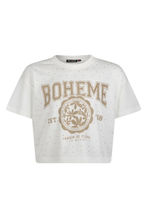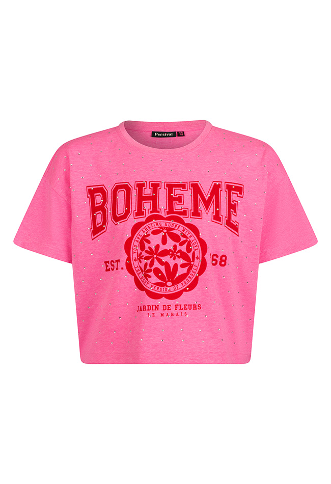 Geef haar garderobe een sportieve en glinsterende touch met dit trendy meisjes T-shirt. Het shirt heeft een boxy fit voor een comfortabele en stoere look, perfect om te combineren met jeans, leggings of een rok. Op de voorkant pronkt een Varsity-geïnspireerde print, afgewerkt met strass-steentjes die subtiel schitteren bij elke beweging.
