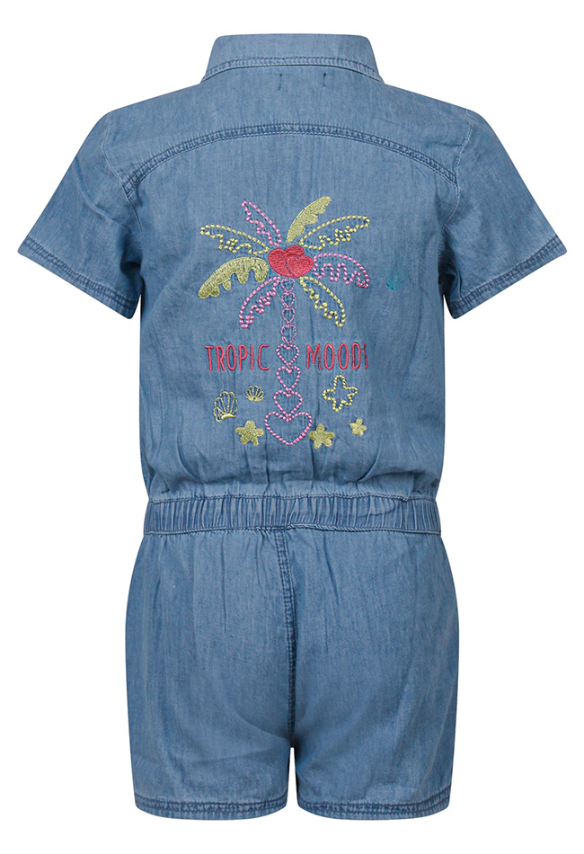 Trendy meisjesjumpsuit met korte mouwen en een stoere, zomerse uitstraling. Voorzien van een praktische ritssluiting, waardoor de jumpsuit makkelijk aan en uit te trekken is. Het broekje heeft twee steekzakken, ideaal voor kleine spulletjes. Het opvallende neonborduur geeft de jumpsuit een speels en modern accent. Gemaakt van comfortabel materiaal, perfect voor actieve dagen en een frisse, eigentijdse look.