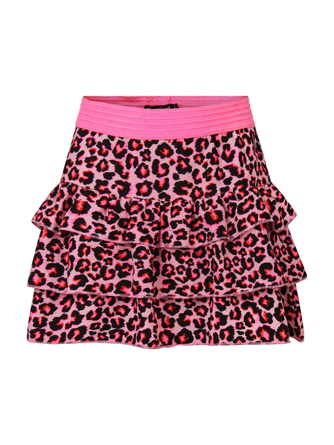 Geef elke outfit een speelse en trendy touch met dit vrolijke strokenrokje voor meisjes. Het rokje is uitgevoerd in een opvallend multicolor panterdesign, perfect voor kleine fashionistaâ??s die graag opvallen. De luchtige crinkle stof zorgt voor een speels gekreukt effect en maakt het rokje heerlijk comfortabel om te dragen. Dankzij de stroken valt het rokje soepel en zwierig.
