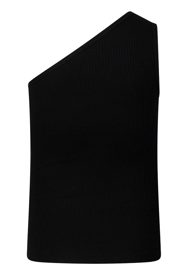 Rib top met een trendy asymmetrisch design en verfijnde pareldetails. De aangesloten pasvorm en unieke snit geven de top een stijlvolle en eigentijdse uitstraling.