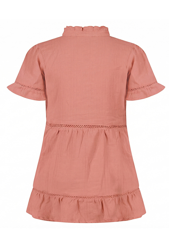 Deze meisjesjurk van Persival is perfect voor feestjes of zomerse dagen. Gemaakt van lichte mousseline voelt de jurk zacht en luchtig aan, ideaal voor actief speelplezier of een speciale gelegenheid. De jurk heeft een korte mouw, een V-hals en een speelse strokenrok met subtiele lace tape details, wat zorgt voor een trendy en zwierig effect bij elke beweging. Een klein hartje op de borst voegt een lief en opvallend detail toe. De lengte maakt hem ideaal voor warme dagen.