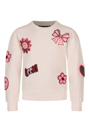 Deze meisjes sweater heeft een vrolijk all-over bloemdessin en een tekst op de borst ?Pick Your Flowers?. Op de mouw zit een speels geweven bandje voor een extra trendy touch. De binnenkant is licht geborsteld, waardoor de sweater heerlijk zacht aanvoelt. Perfect te combineren met een jeans of rokje voor een speelse outfit.