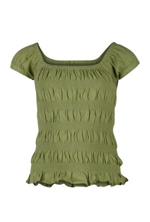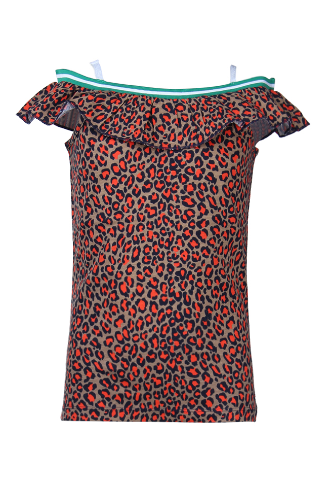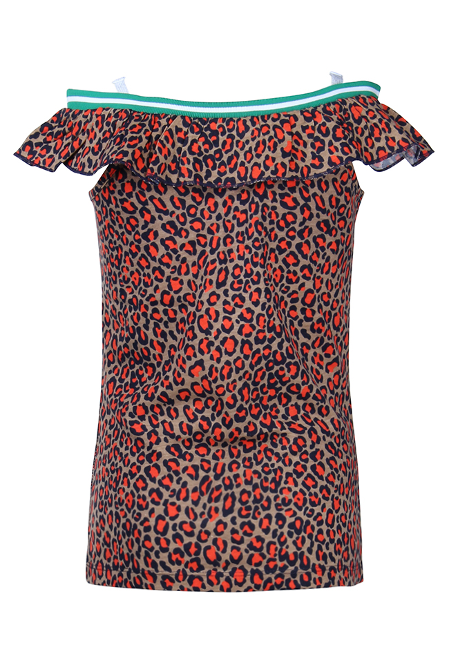 Off the shoulder jurkje van Persival. Het jurkje heeft glitter spaghetti bandjes, het off the shoulder gedeelte heeft een ruche effect. Materiaal: 50% polyester, 50% katoen