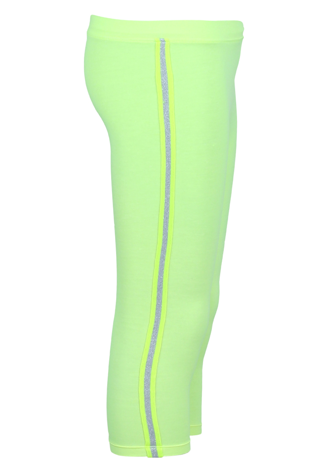 Legging met glitter streep langs de zijkant. De legging heeft een capri lengte en is dus iets korter. Materiaal: 95% katoen, 5% polyester.