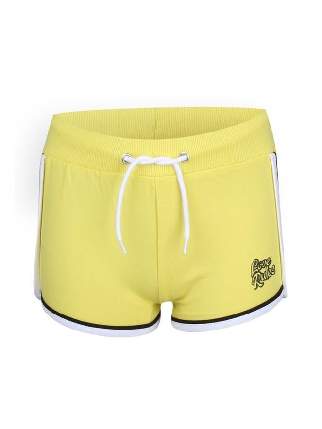 Shorts van jogging stof van Persival. De shorts hebben een elastieken taille met touwtje en de tekst Love rules. Materiaal: 95% katoen, 5% elasthan