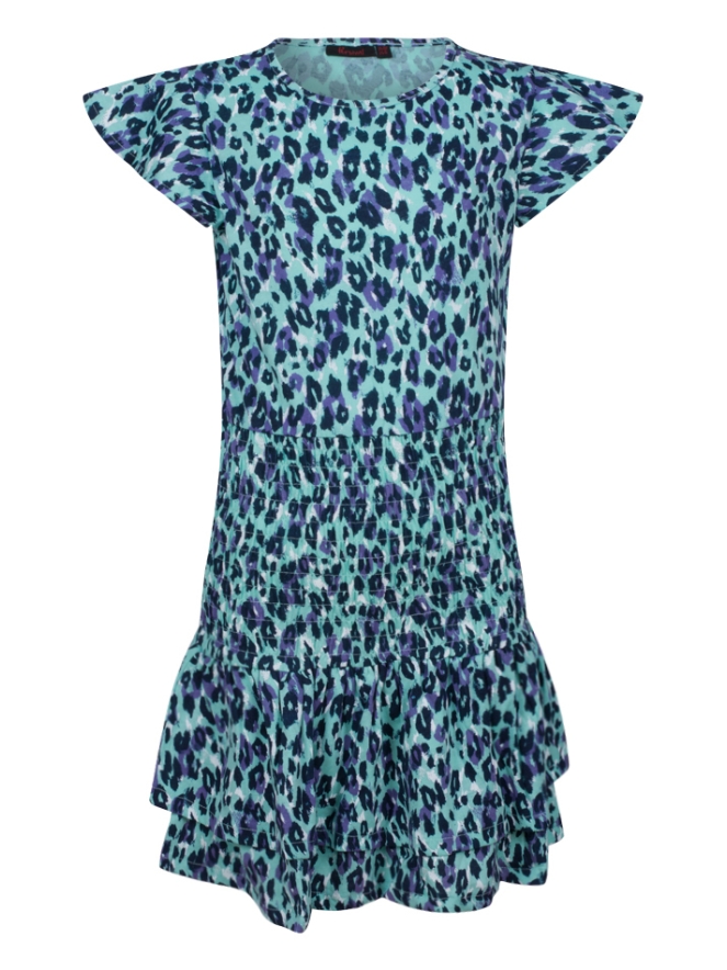 Smock jurkje van Persival. Het jurkje heeft een animal print en een smock band met een uitlopend rokje. Materiaal: 50% katoen, 50% elasthan. 30 graden wassen, niet bleken, niet in de droger, kan gestreken worden.