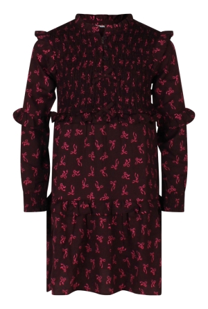 Jurk van Persival. De jurk heeft een all over stippen print en smock details bij de mouwen en de taille. Het jurkje heeft een laagjes rokje. Materiaal: 50% katoen, 50% polyester. Wassen op 30 graden, niet in de droger, niet bleken, kan gestreken worden.