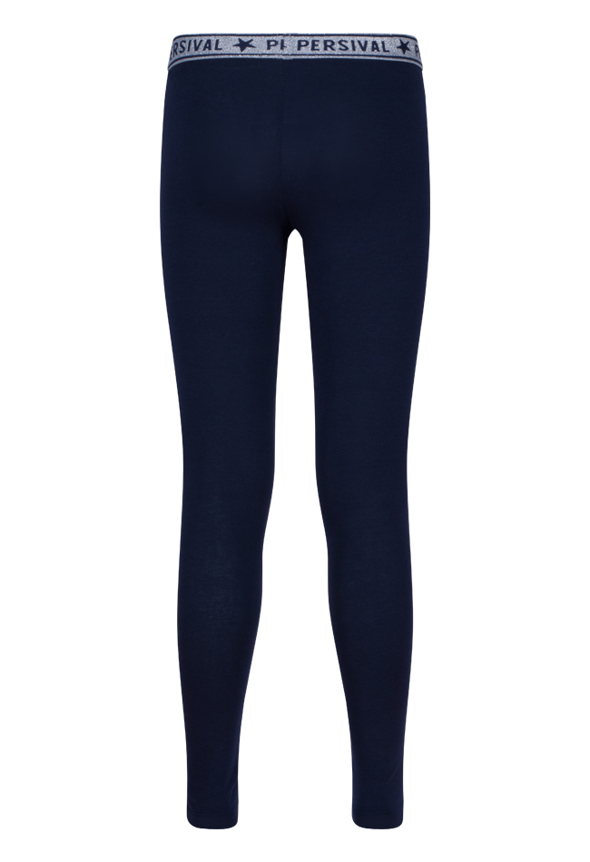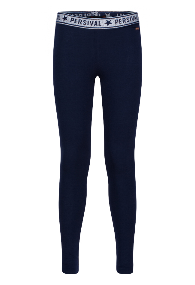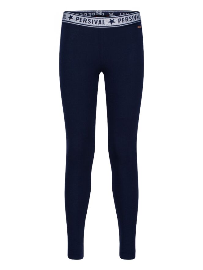 Legging van Persival. De legging heeft een effen kleur met een glitter logo taille band. Materiaal: 95% Katoen, 5% elasthan. wassen op 30 graden, niet bleken, niet in de droger, kan gestreken worden.